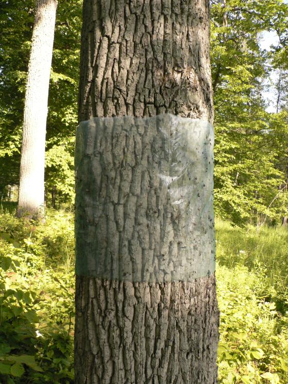 W maju można założyć opaski lepowe na pniach dębów (w miejscach nasłonecznionych), aby sprawdzić czy łapią się gatunki z rodzaju Agrilus (opiętek). W tym celu założyć na obwodzie pnia folię (im szerszy pasek tym lepiej), którą smarujemy "lasolepem".