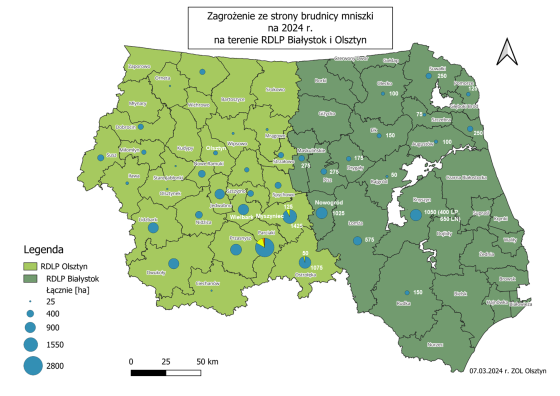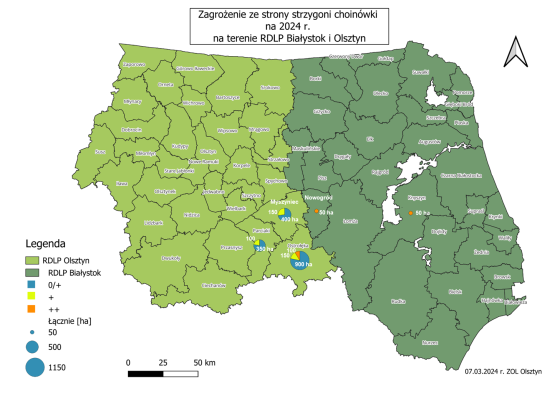 Przedstawiamy zagrożenie na terenie RDLP Białystok i Olsztyn na 2024 rok ze strony: