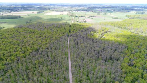 Drzewostany liściaste - ścinka drzew na płachtę i przelot dronem